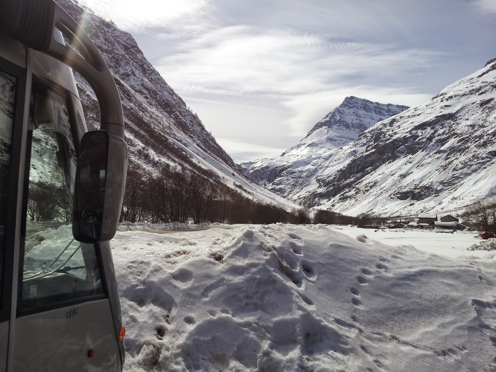 setting surrounded by snow covered mountains. After lunch we headed back down